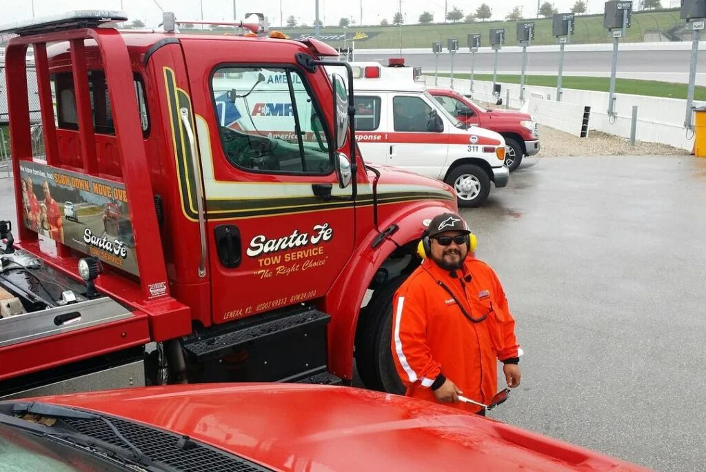 If you’ve ever been to a race at the Kansas Speedway, maybe you’ve noticed a fleet of tow trucks buzzing around the track between runs. Santa Fe Towing has been elected to support the drivers who race at the professional level. Due to the fast-paced and unpredictable nature of the sport, only the best tow truck drivers are chosen for the job. Duties include skillfully push-starting cars that can only accelerate from second gear and handling the high-pressure cleanup that only happens on a racecourse.